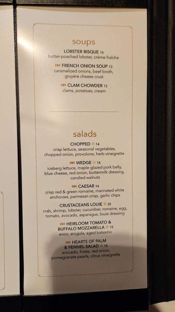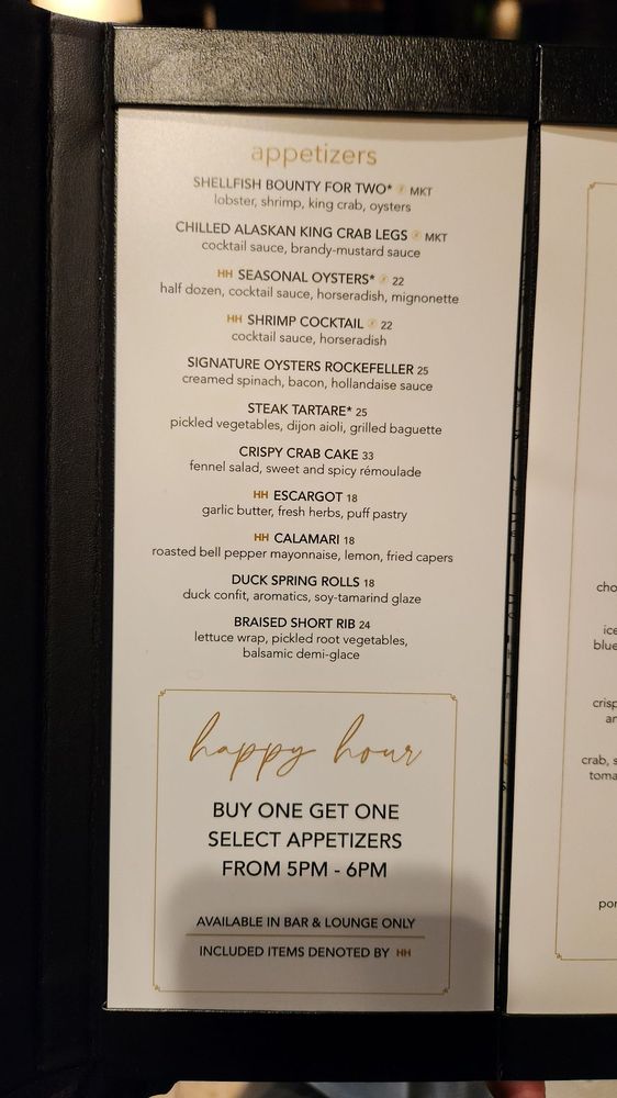 Begin your culinary journey with a rich lobster bisque or a savory French onion soup. The extensive selection of entrees includes mouthwatering cuts like the 18 oz Bone-In Filet and fresh seafood offerings, notably the succulent roasted lobster tail.